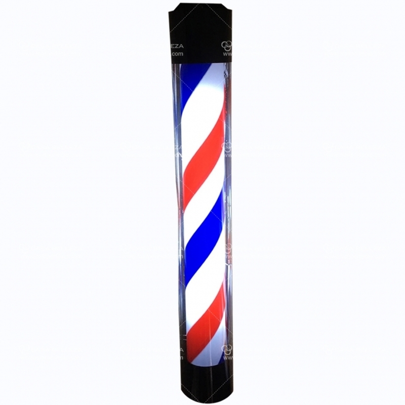 Letrero de Barbería Giratorio de 90 × 15 cm diseñado para uso profesional en fachadas y entradas de barberías o peluquerías. Su cilindro giratorio con diseño clásico rojo, blanco y azul mejora la visibilidad del negocio, incluso a distancia, y funciona como señal distintiva del rubro. Incorpora iluminación interna para destacar tanto de día como de noche, aumentando el flujo de clientes y reforzando la identidad del local. Su estructura está fabricada en materiales resistentes a la intemperie, asegurando durabilidad frente a sol, lluvia y viento. Incluye soporte para instalación en muro y sistema eléctrico estable para un funcionamiento continuo y seguro.